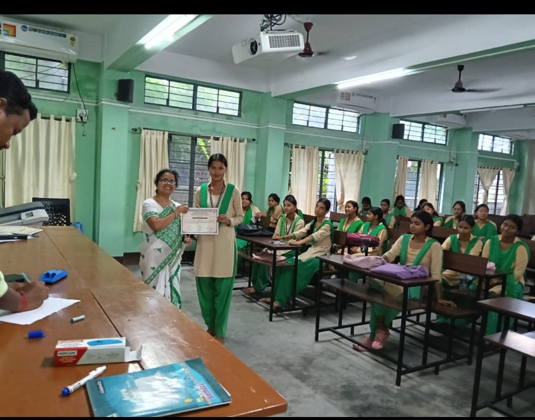 The political science department of Birjhora Kanya Mahavidyalaya organised a departmental Quiz competition on 6.11.2025 in our college premises at NB 1. The competition began with a brief inaugural session, where the HOD of the department delivered the welcome address and highlighted the importance of such academic activities in enriching students understanding of political issues. A total of 11 teams from BA 1st, 3rd and 5th semester students participated in the competition. The quiz consisted of several rounds such as political science round, general knowledge round, picture identification round, current international affairs round etc. After an exciting and competitive session , three teams secured 1st, 2nd and 3rd position. All the participants were given participation certificate and the winners will be given awards in the upcoming College week programme.